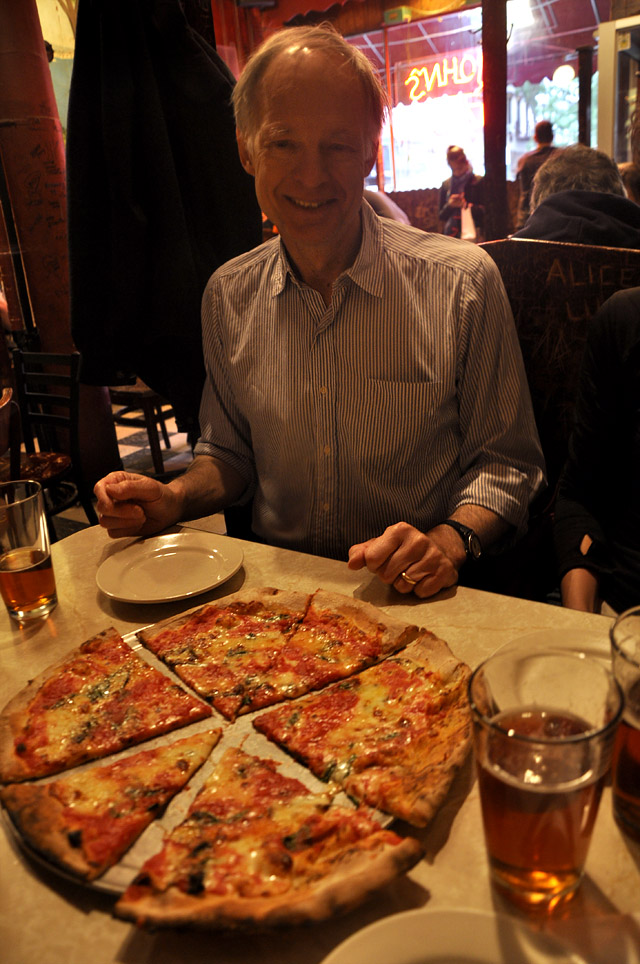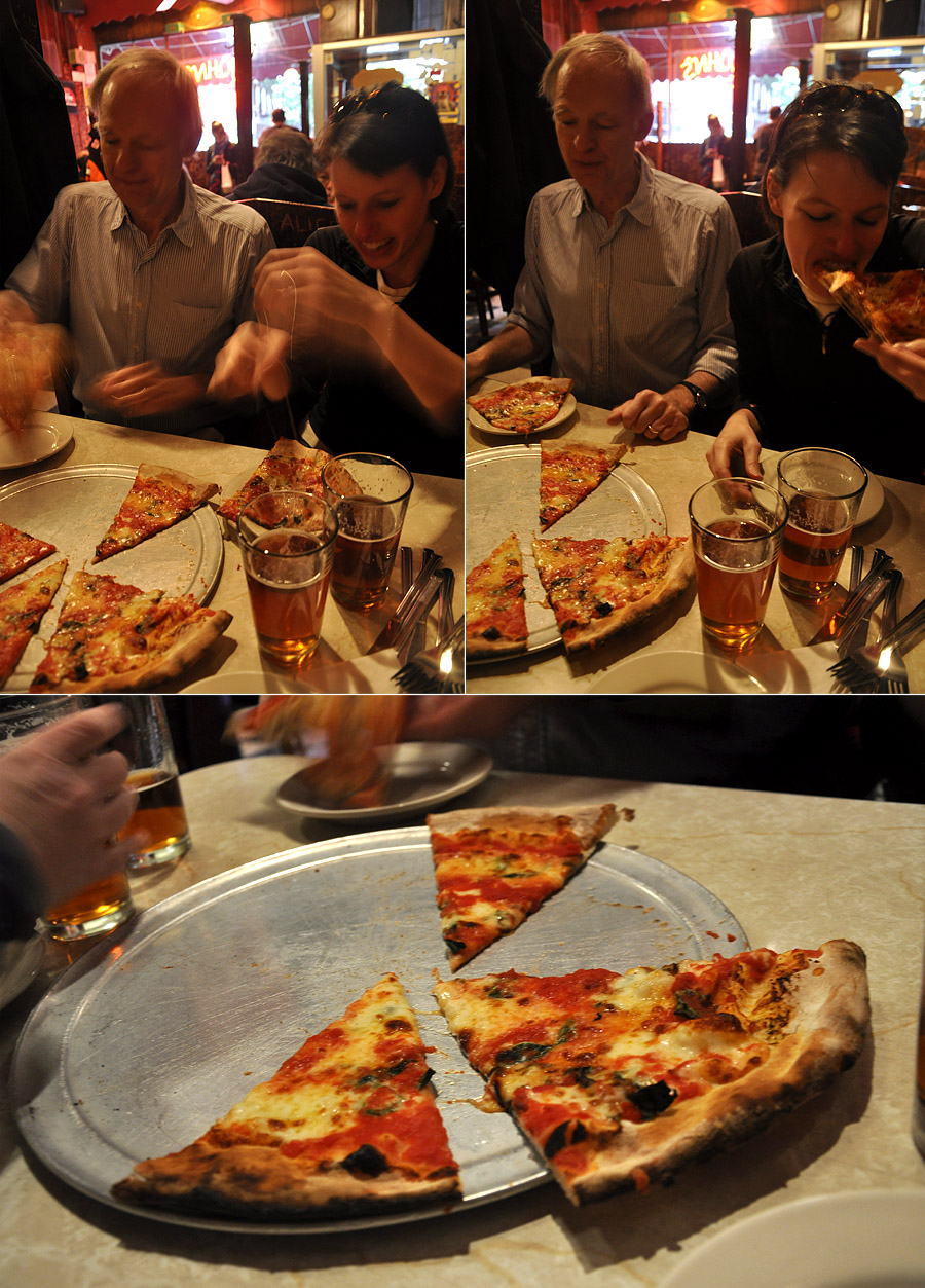My uncle in-law Will lives and breathes New York and took us on a tour from Riverside Park to the Highline, through Greenwich Village where, with weary legs and hungry stomaches, we stopped at the legendary John's Pizza for slices and a pitcher of cold beer.
