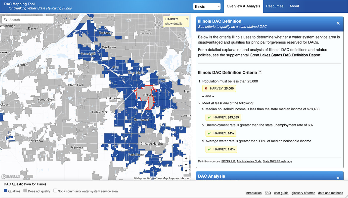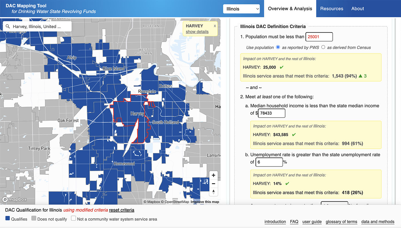 Safe drinking water isn’t guaranteed—even in America. This tool helps people understand how water infrastructure funding is allocated across the Great Lakes region. The interactive mapping platform transforms complex policy rules into an accessible interface where users can explore eligibility criteria, compare scenarios, and visualize real-world impacts—supporting more transparent and equitable investment in clean water.