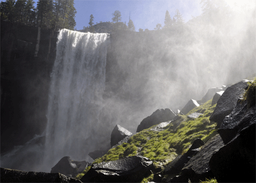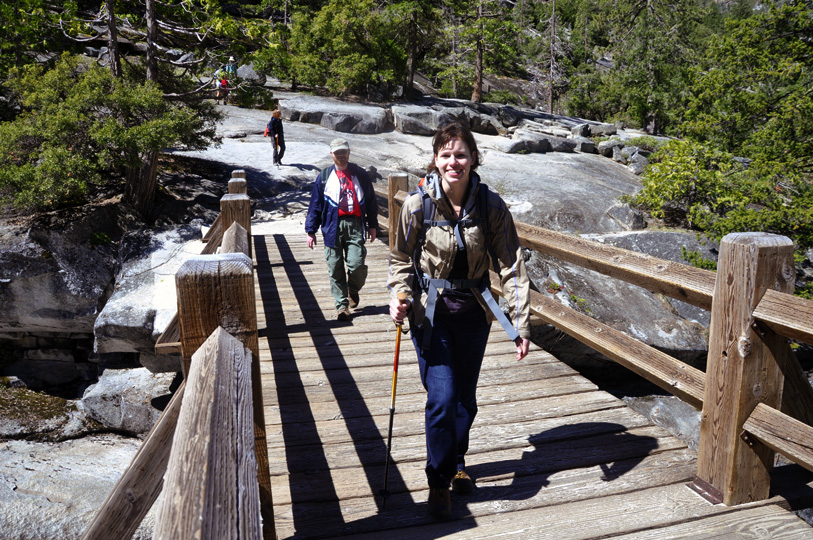 Today's hike will follow the popular Mist Trail along the Merced River past Vernal Fall and Emerald Pool, to Nevada Fall. In all, about a 7-mile loop with 2,200 feet elevation gain.