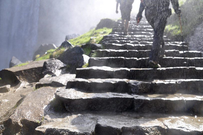 Countless gallons of water furiously rush below my feet and disappear off the cliff side.