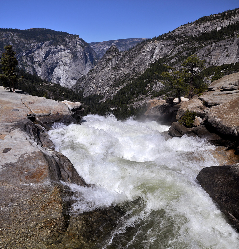 Atop Nevada Falls a breathtaking view of water endlessly tumbling into the valley.