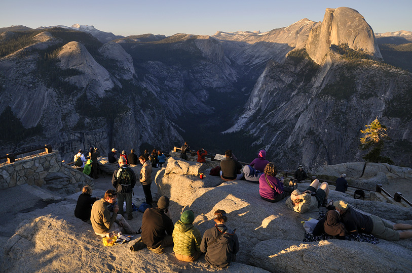 A popular gathering spot to catch a Yosemite sunet.