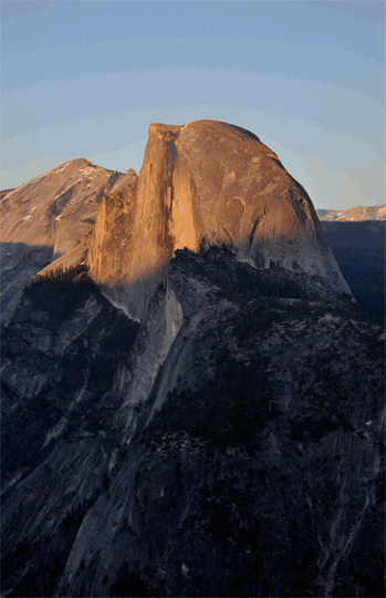 All eyes are on Half Dome as it slips below the day's last rays of sunlight.