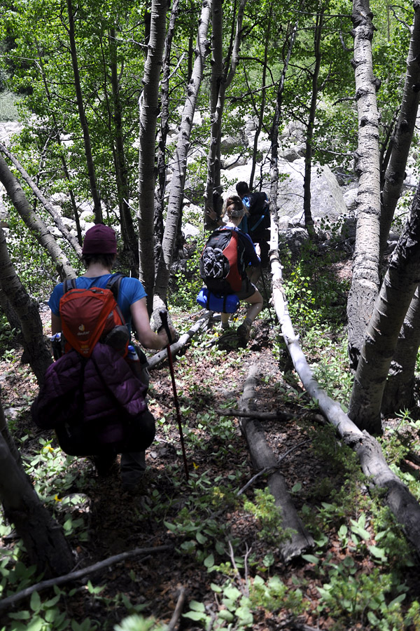 After a few hours of uncertain bushwacking, we found a trail that ultimately led us towards the beer stash.