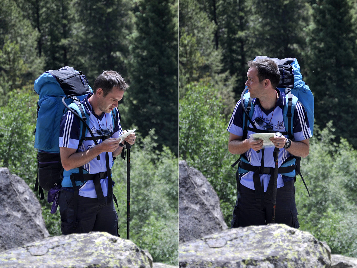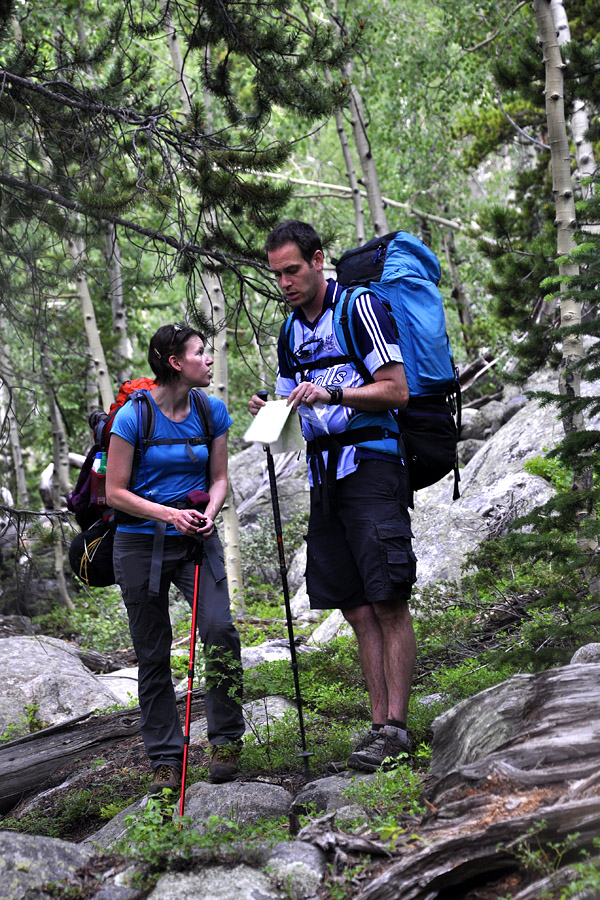 It started to sink in that there was nothing but forest and mountain around us, but no trail.