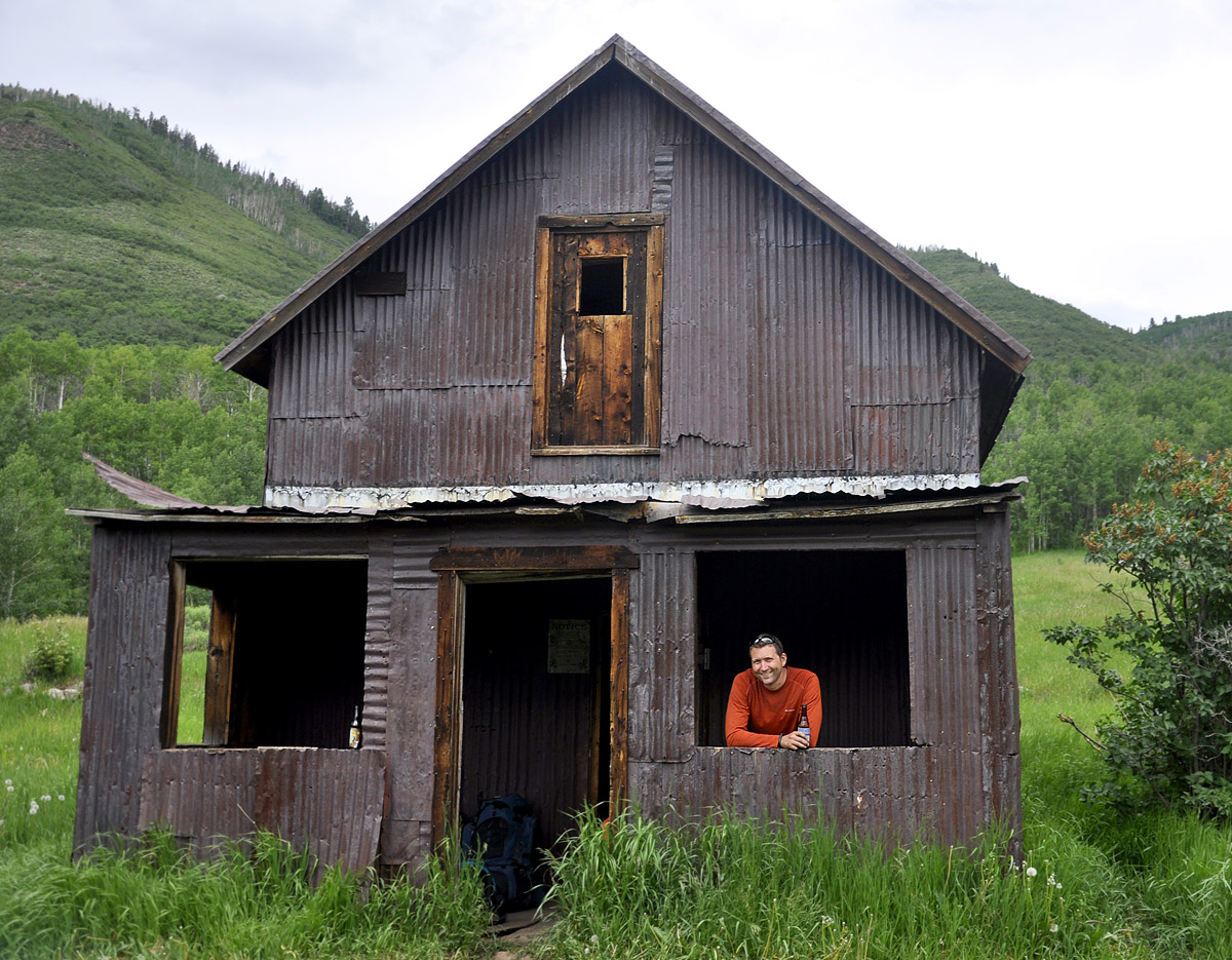 A sight for sore eyes (and legs): our beer stash and ghost town home.