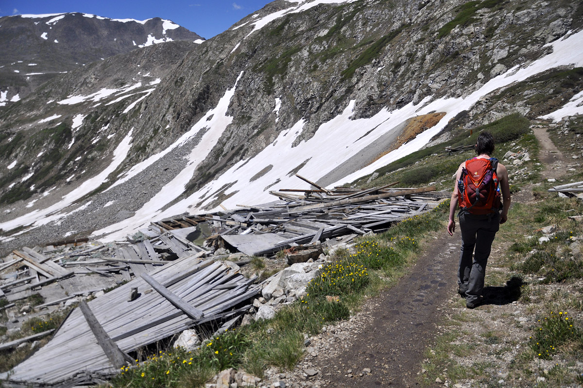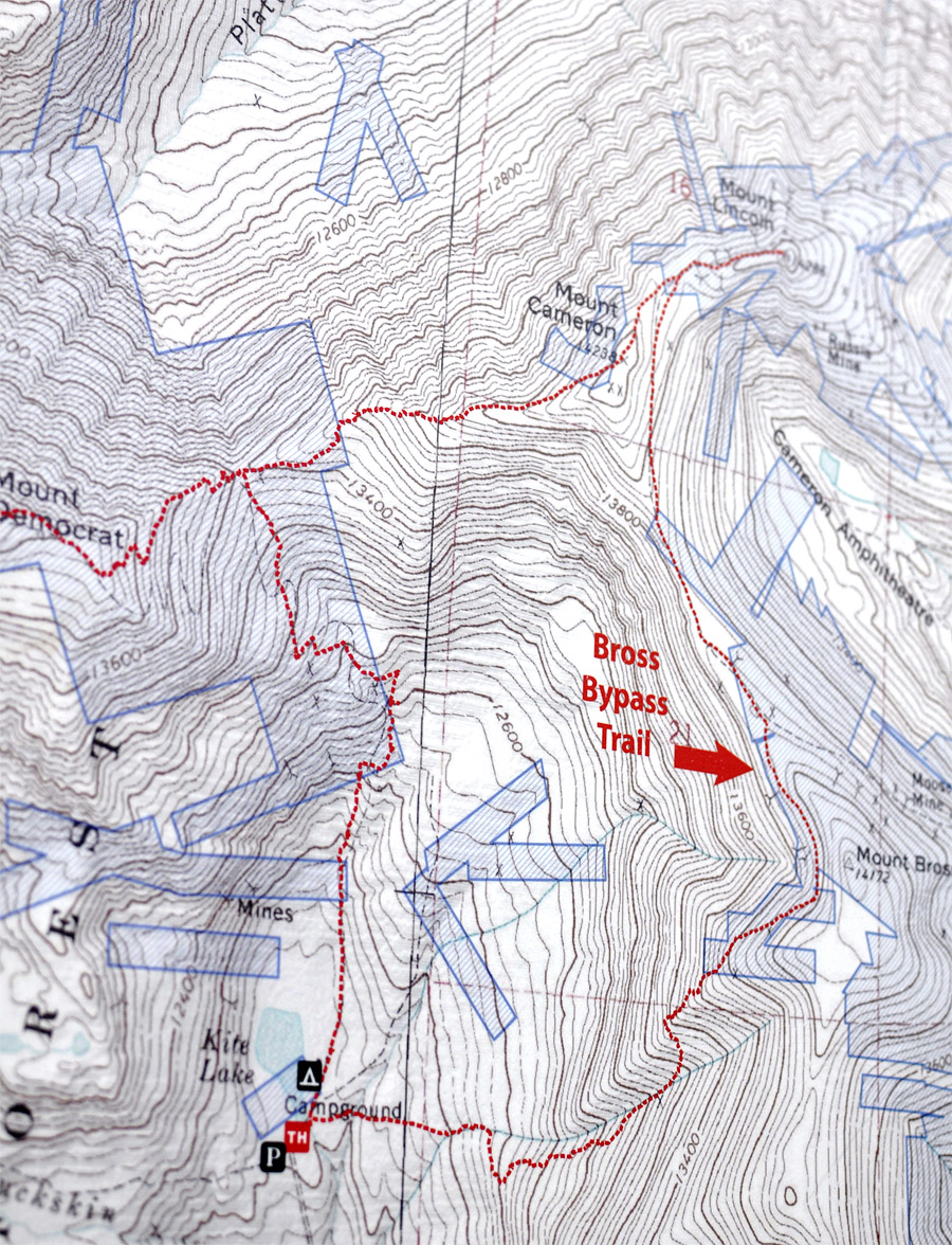 That faint zig-zag behind me is the trail to the top of Mt. Democrat.