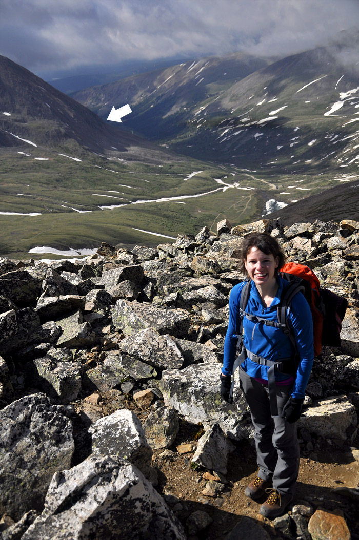 The arrow marks where we started hiking.