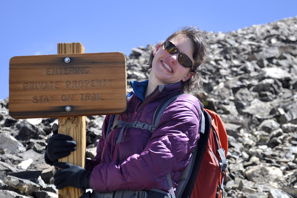 Kate was happy to finally reach this sign which meant we were probably less than 2 miles from the bottom.